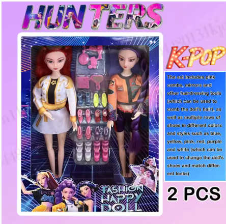 This 2-piece set of Kpop Demon Hunters figure models features detailed PVC craftsmanship, ideal for collectors and fans alike. Each figure captures the vibrant essence of cartoon-inspired gaming characters, making them perfect as desk decorations or display pieces. Durable and carefully designed, these figures serve as an engaging collection for kids and enthusiasts looking to enrich their gaming setup or memorabilia.